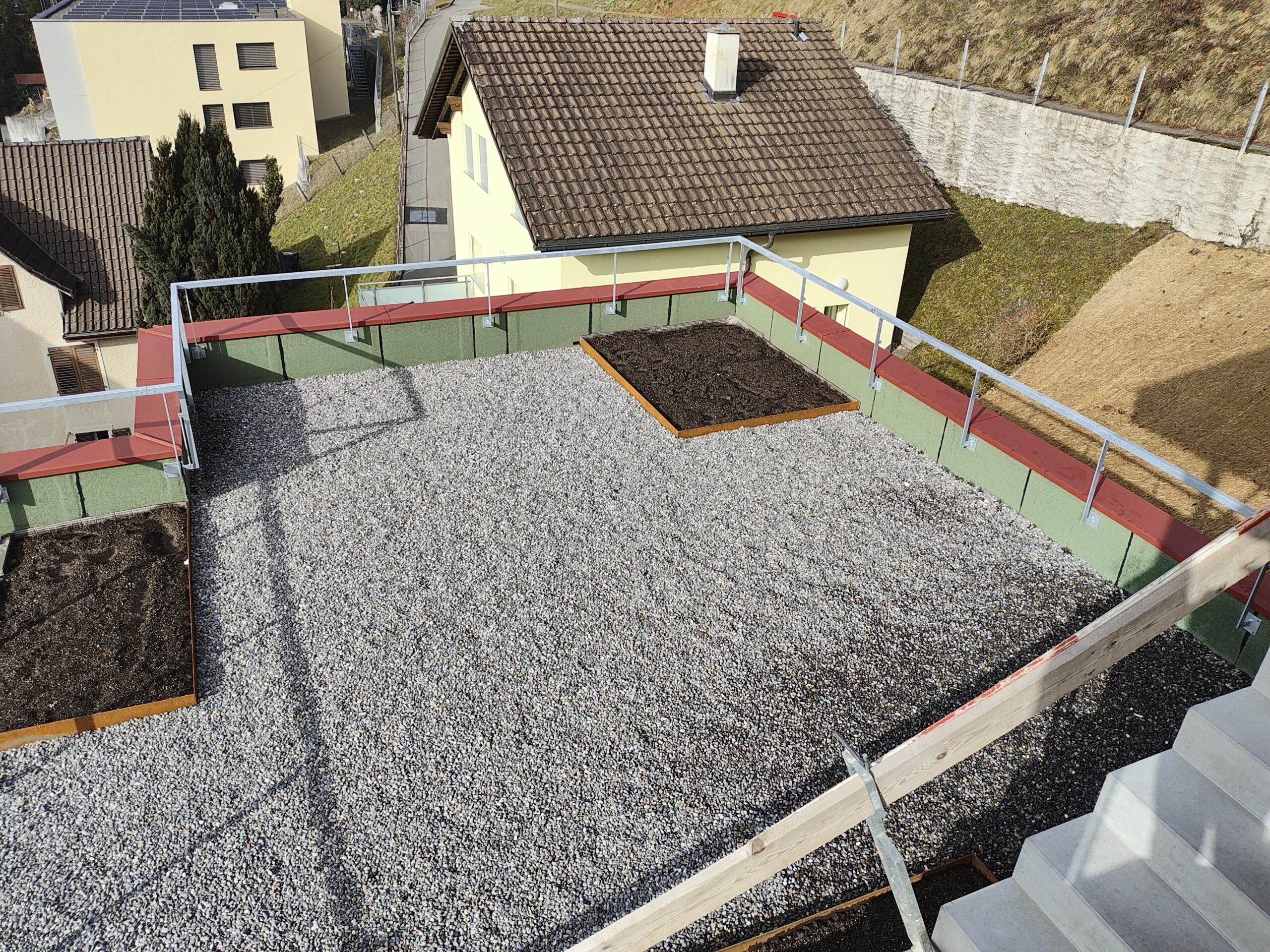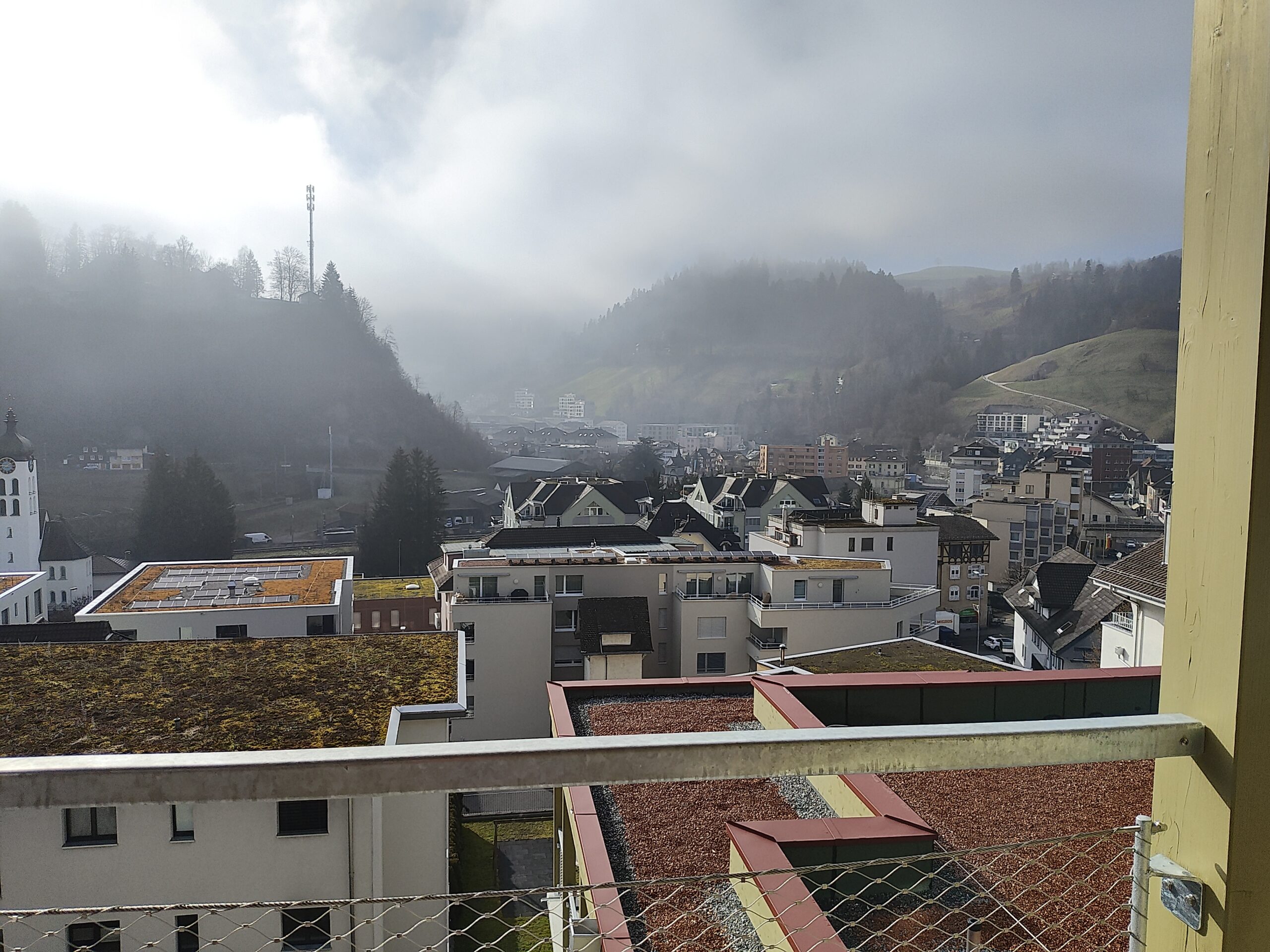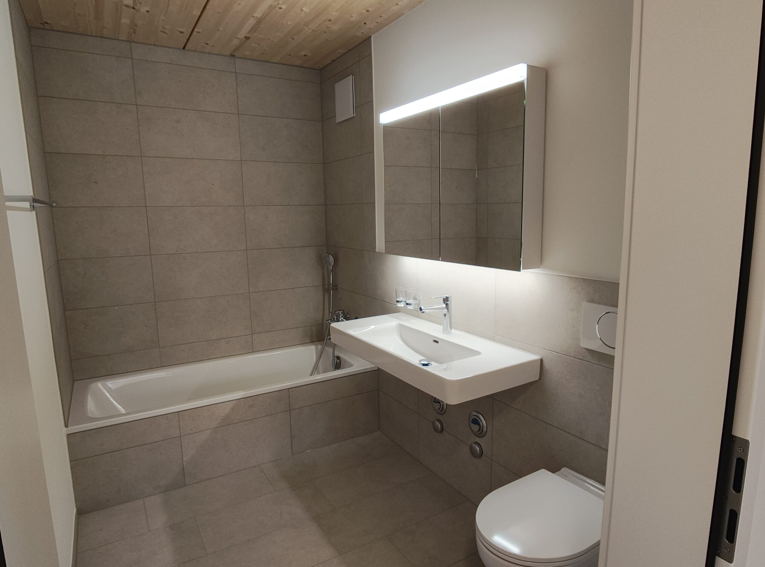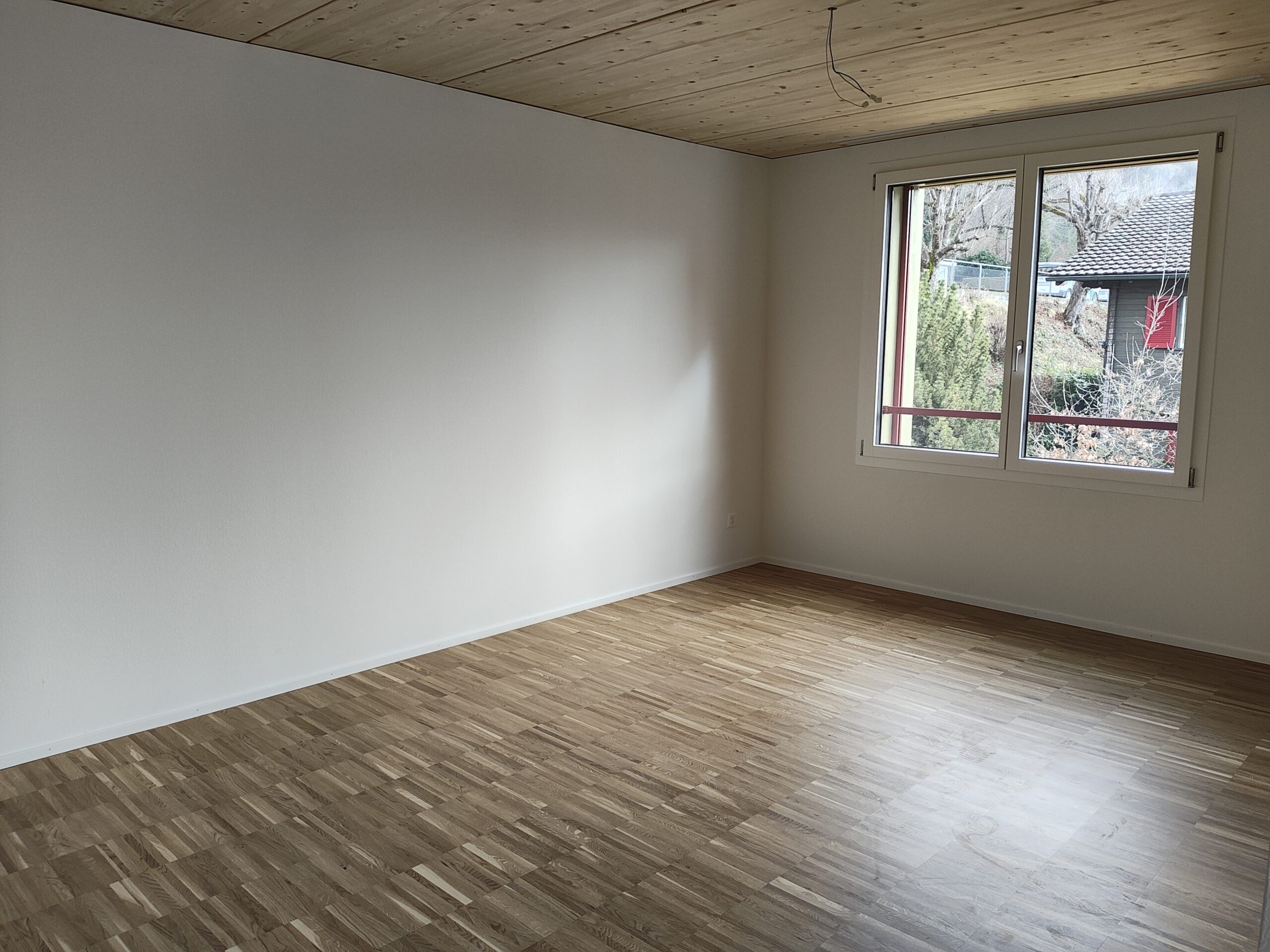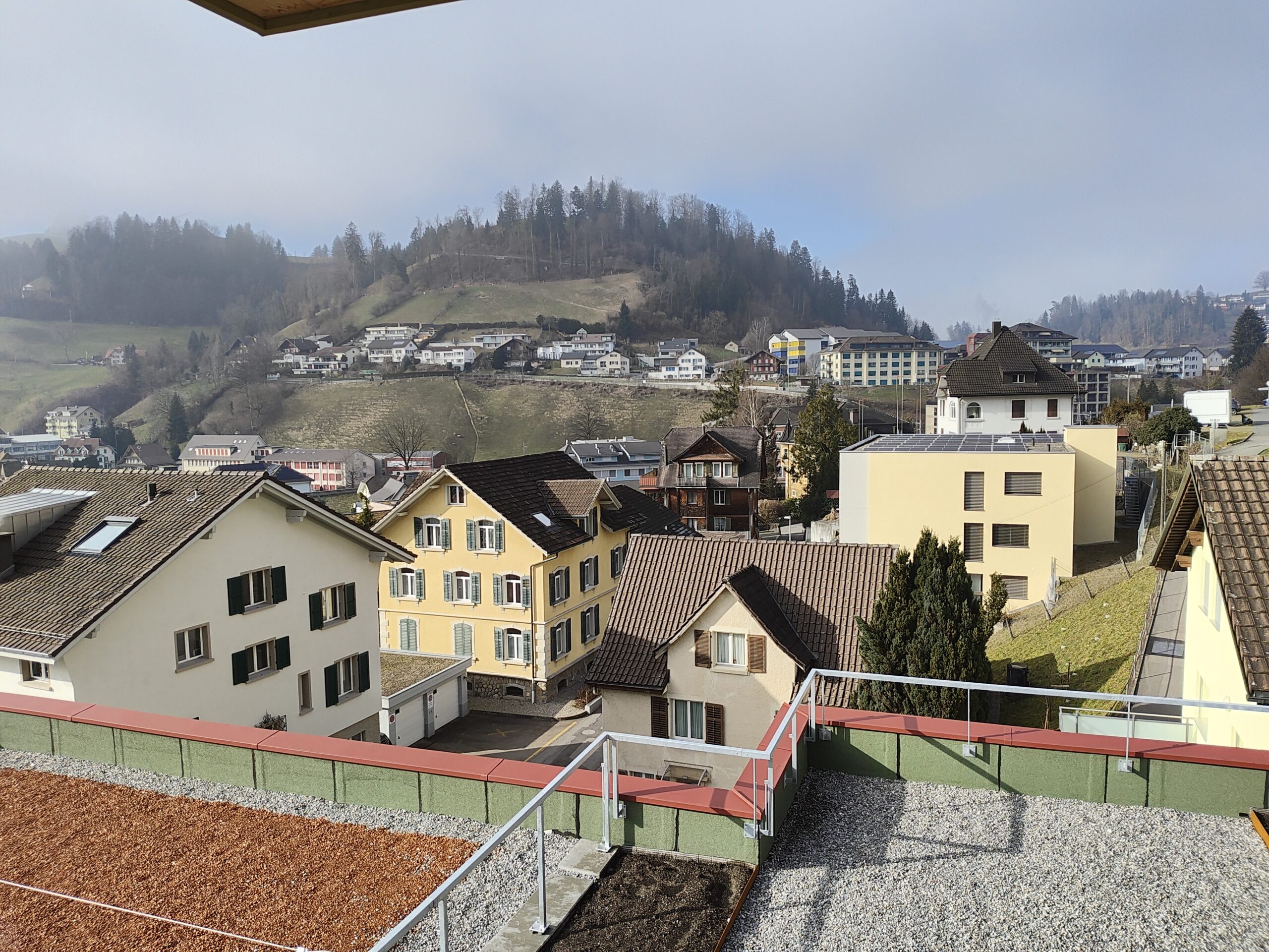 neue sonnige 5.5-Zimmerwohnung mit guter Aussicht, umlaufendem Balkon, Holzbau, Wasch/Trockner-Kombination, Glasfaser, Wärmepumpe, Nähe Kirche